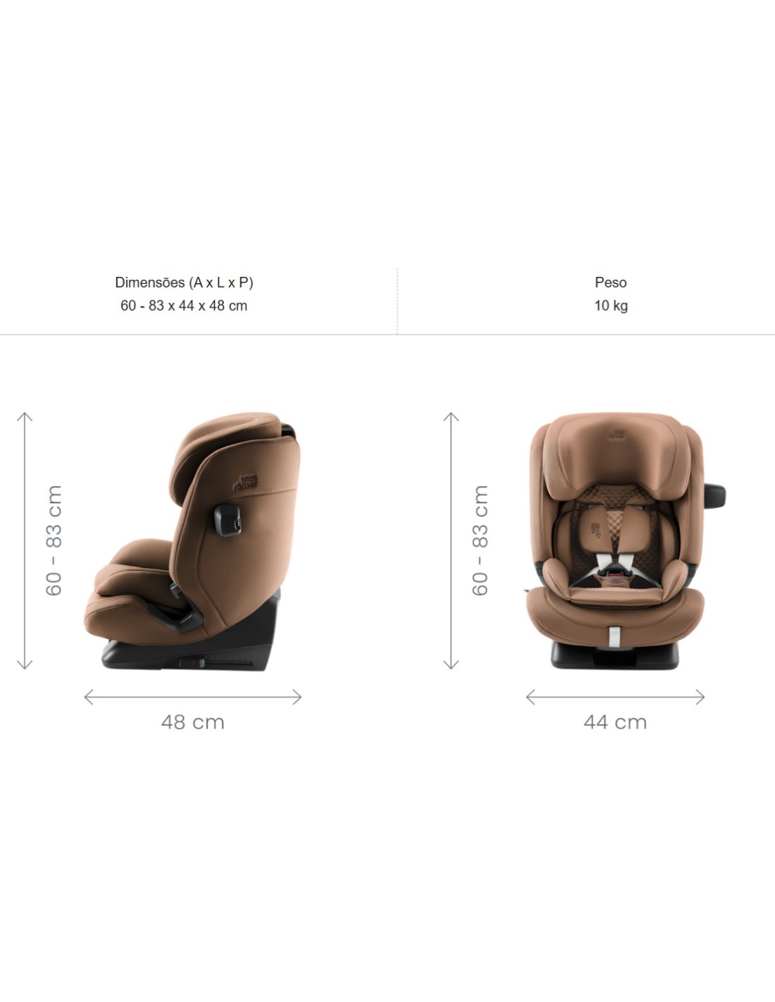 Uso desde 76cm até 150cm, 9kgs até 50kgs, a partir de 15m a 12 anos.